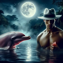 O guardião e mensageiro do rio: Em outra face, onde o boto é protetor das águas e de seus seres. Como símbolo, lembra que o rio é fonte de vida e poder, quebrar seus “códigos” pode atrair castigos ou desordens. Nessa leitura, o boto incorpora a autoridade moral do ambiente aquático.