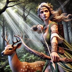 No panteão romano, Diana aparece como a deusa da caça, dos animais selvagens, das áreas limítrofes entre a cidade e a floresta, e, por extensão, da lua e da noite e ela é a contraparte romana de Ártemis, herança grega. Na iconografia clássica, surge jovem, armada com arco e aljava, muitas vezes acompanhada por cães de caça ou por uma corça. Como deusa lunar, é identificada também pelo crescente. Essas imagens funcionam como sinais de caçadora, guardiã da juventude feminina, força que instaura limites entre o domesticado e o selvagem.
