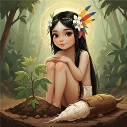 No rico folclore indígena brasileiro, a lenda de Mani se destaca como um dos mais profundos e belos exemplos do simbolismo da regeneração e do sacrifício. Mani era uma menina sagrada, de origem misteriosa e pele incomumente branca para sua tribo Tupi, amada por todos por sua alegria e pureza. Sua morte repentina, embora envolta em tristeza e mistério, não foi um fim, mas sim um ponto de inflexão cósmica.